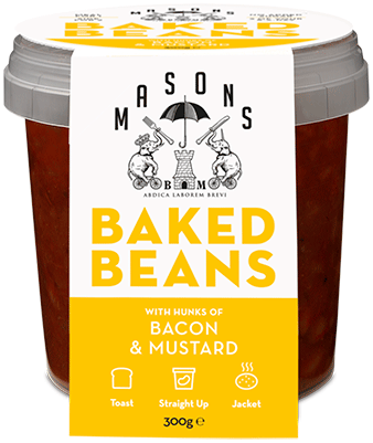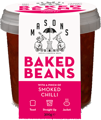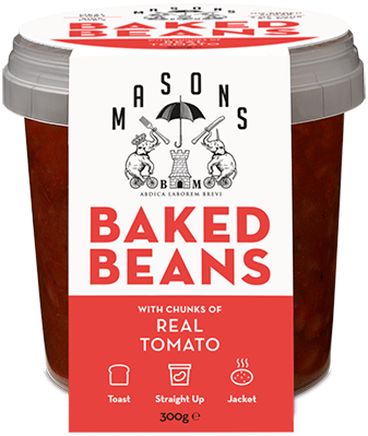 Masons Beans are a healthy, tasty and filling one-pot meal. Cooked by hand with onion, garlic, chunks of tomato and bacon and all sorts of tasty things.